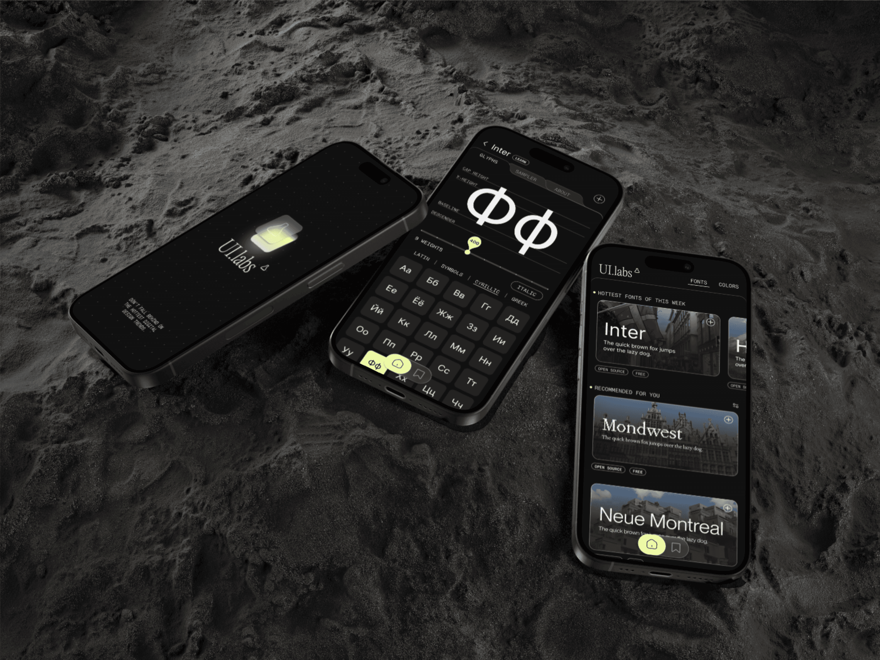 UI.labs is a mobile app with a strong curated algorithm that allows users to browse for design inspiration, saving typefaces and color palettes to create brands, staying on top of design trends.
